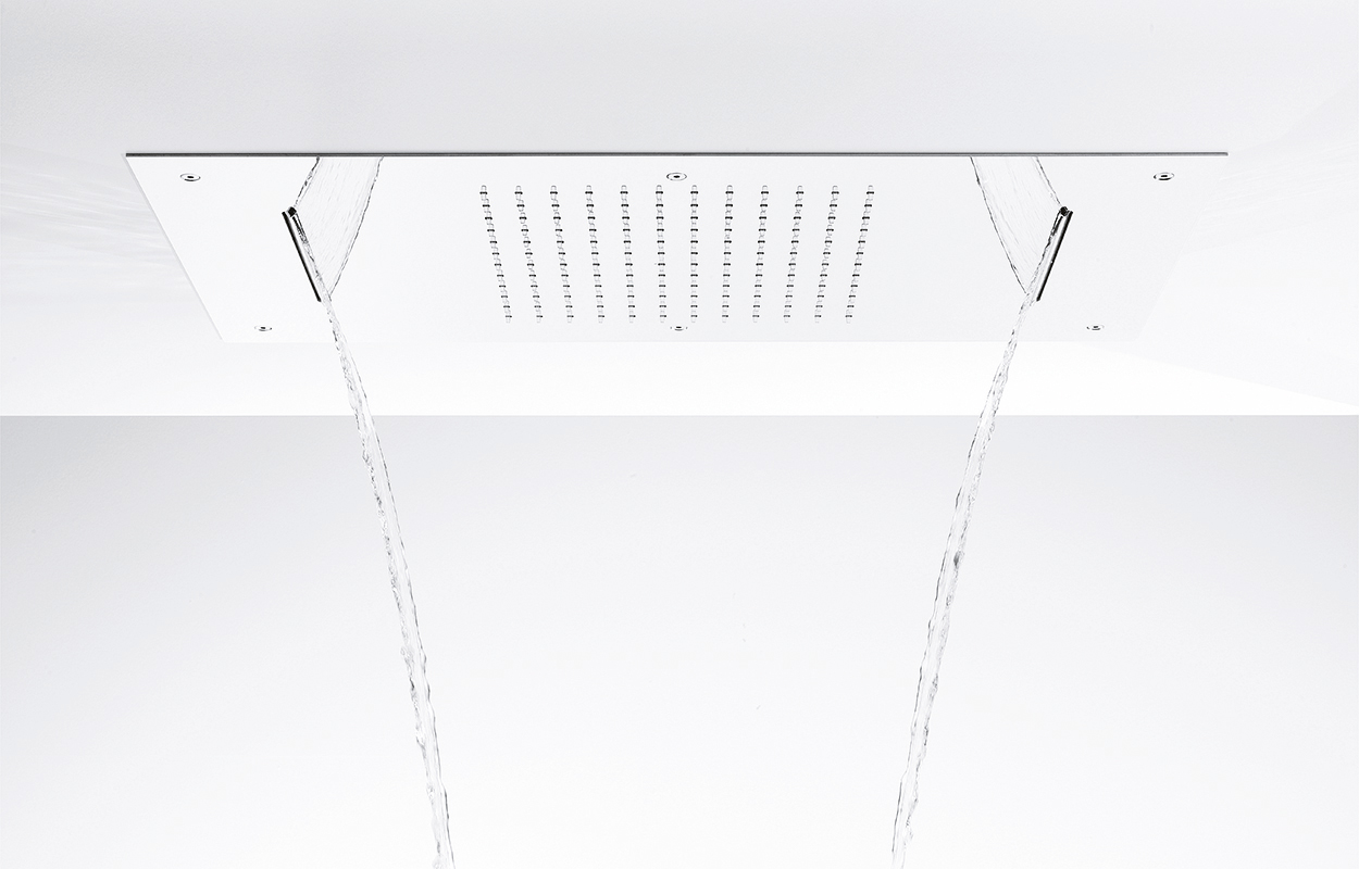 Doccinox showers are made in Italy from mirror polished plates of stainless steel. Sleek and opulent, these ceiling showers fit flush up to the ceiling and are available in a range of generous sizes.
