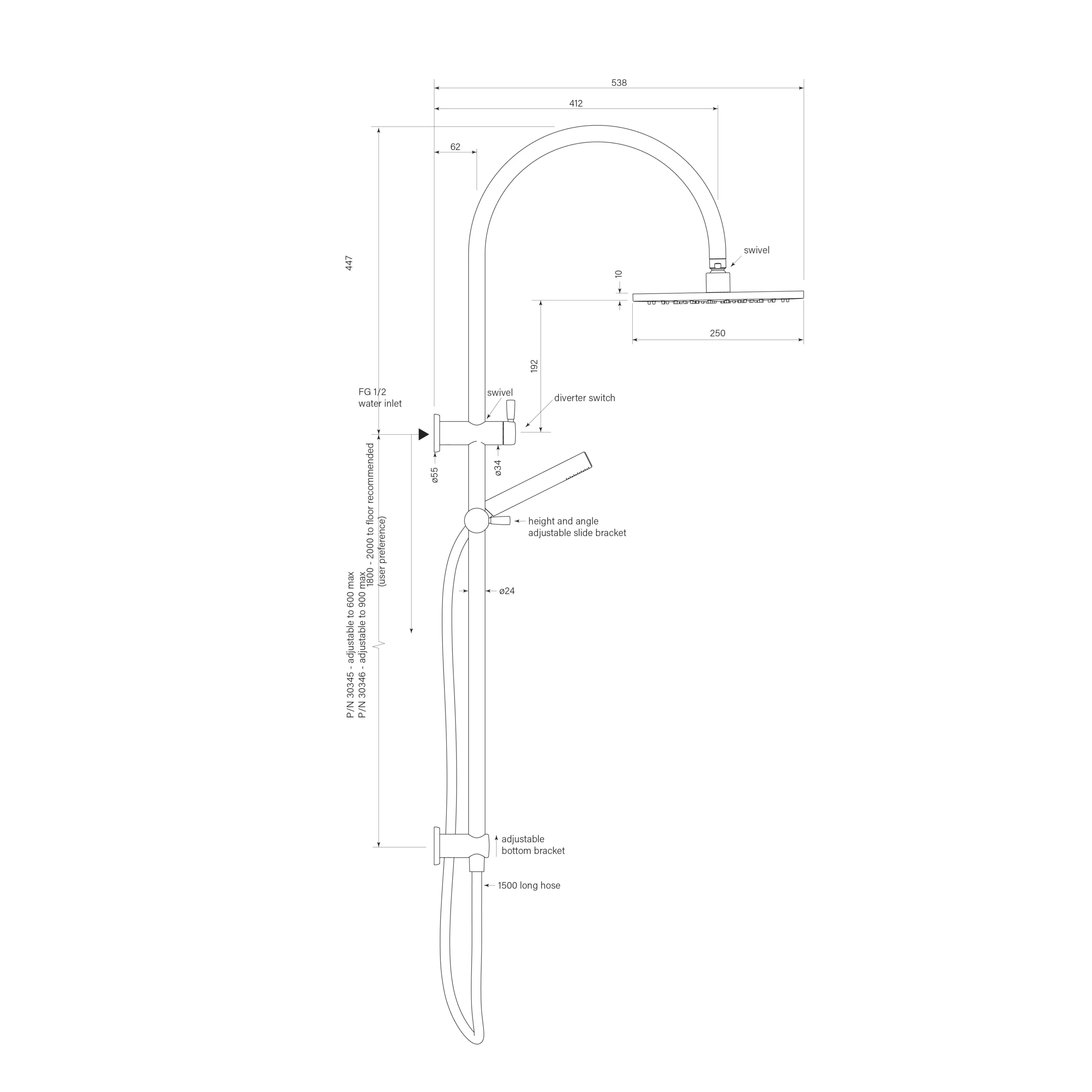 Bremont Hand Shower on Adjustable Hook, 90Rnd