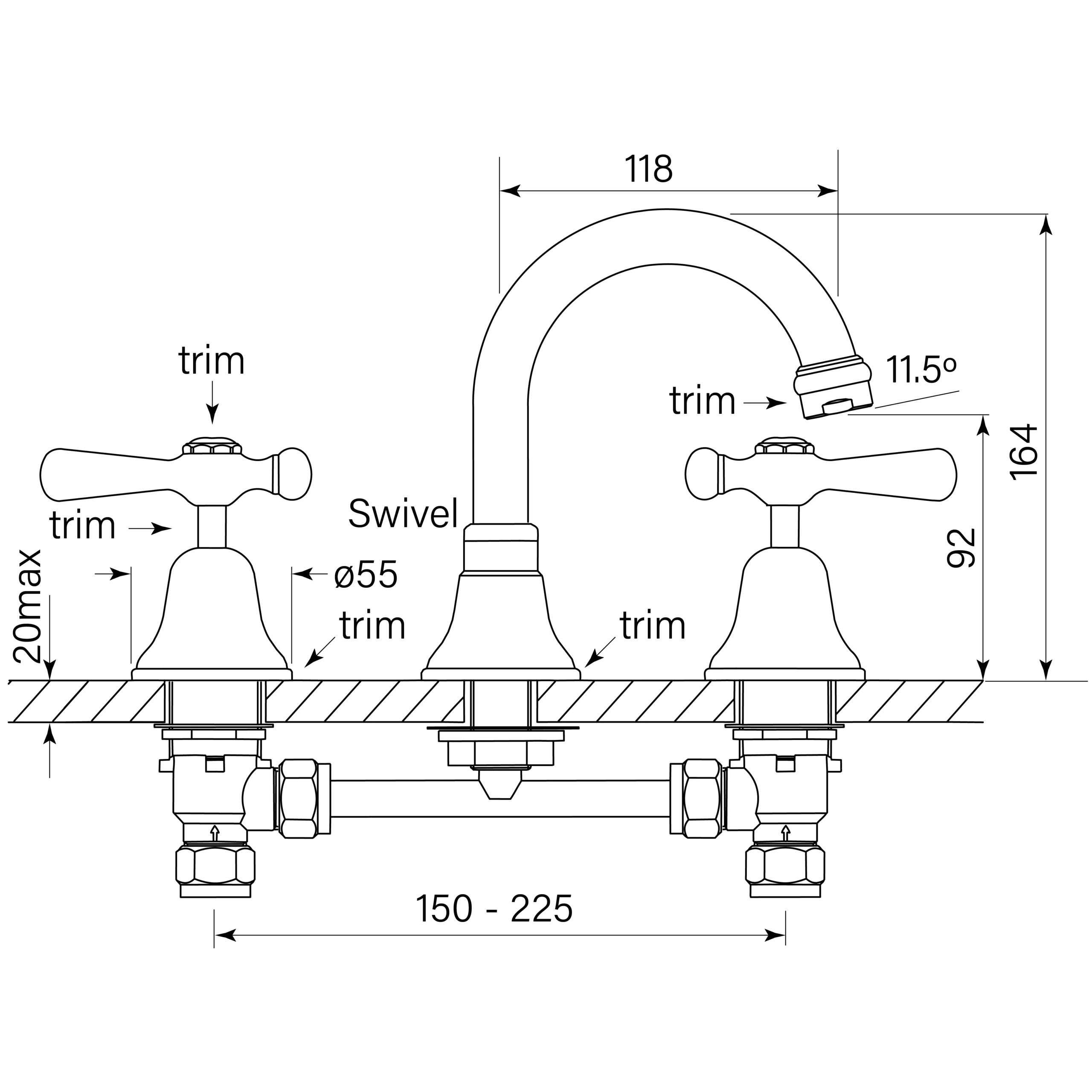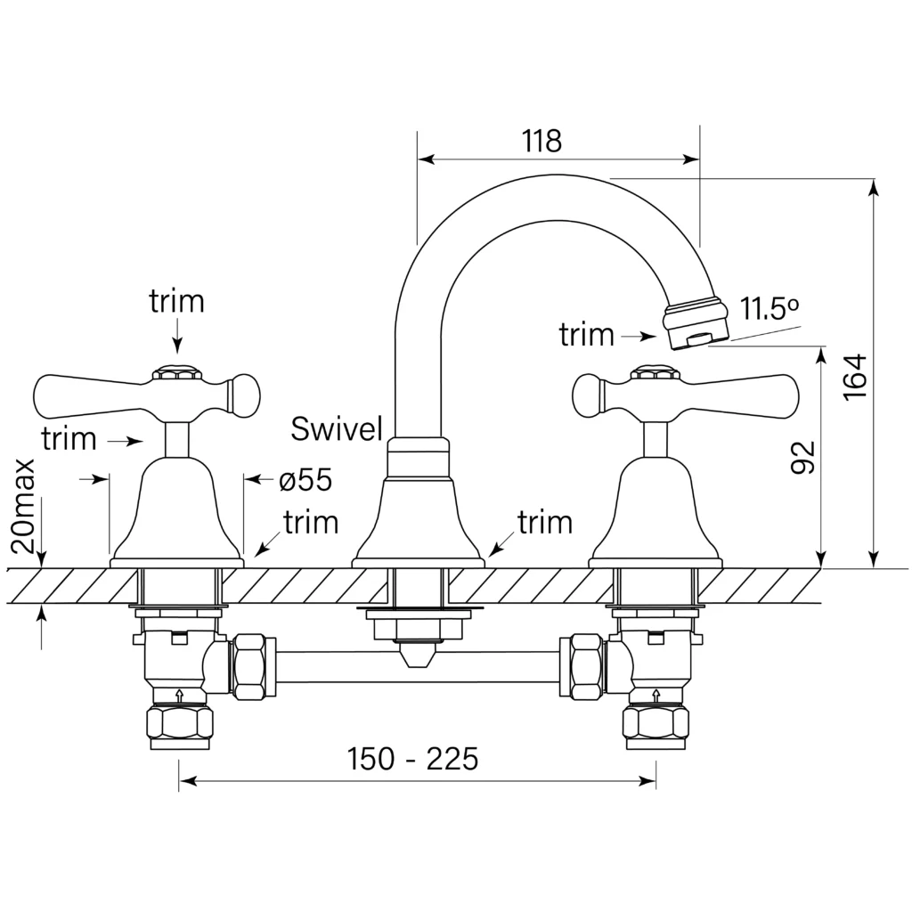 Swivel spout 118 mm reach