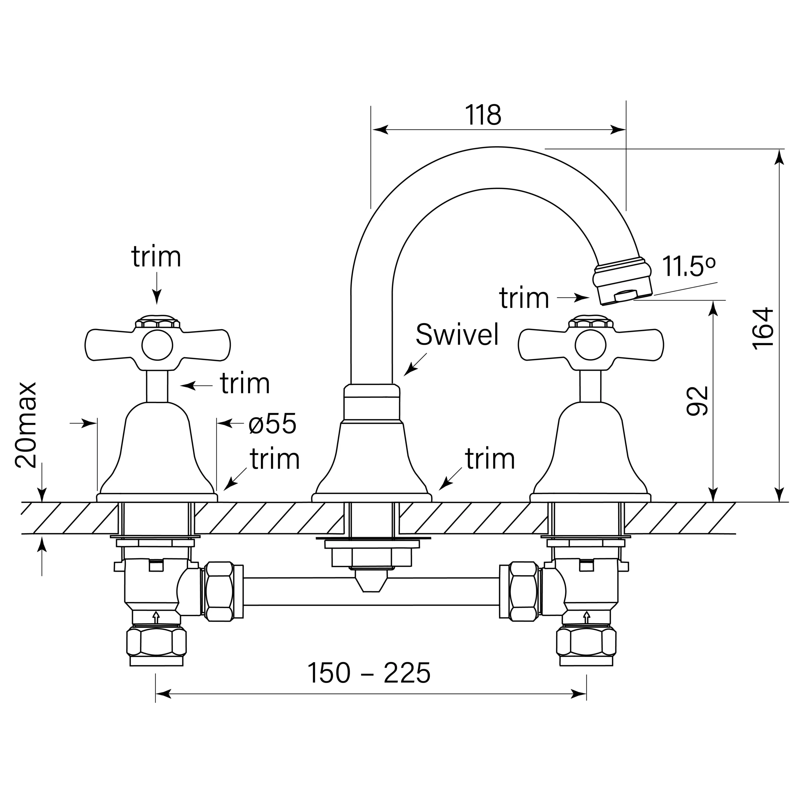 Swivel spout 118 mm reach
