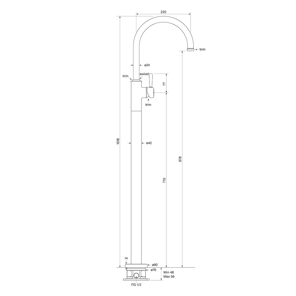 Swivel spout reach 220 mm