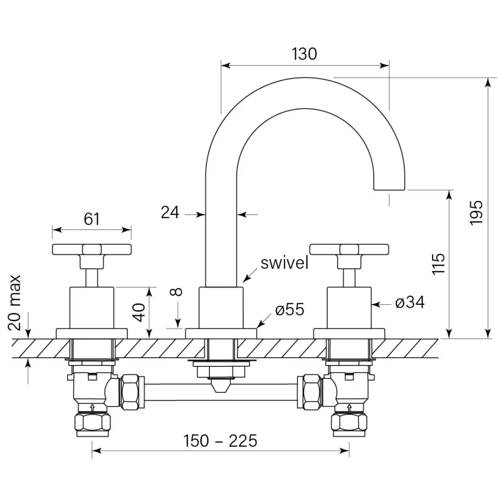 Chisel lever and cross handle taps are fixed to the valve with this clever hidden fixing system.