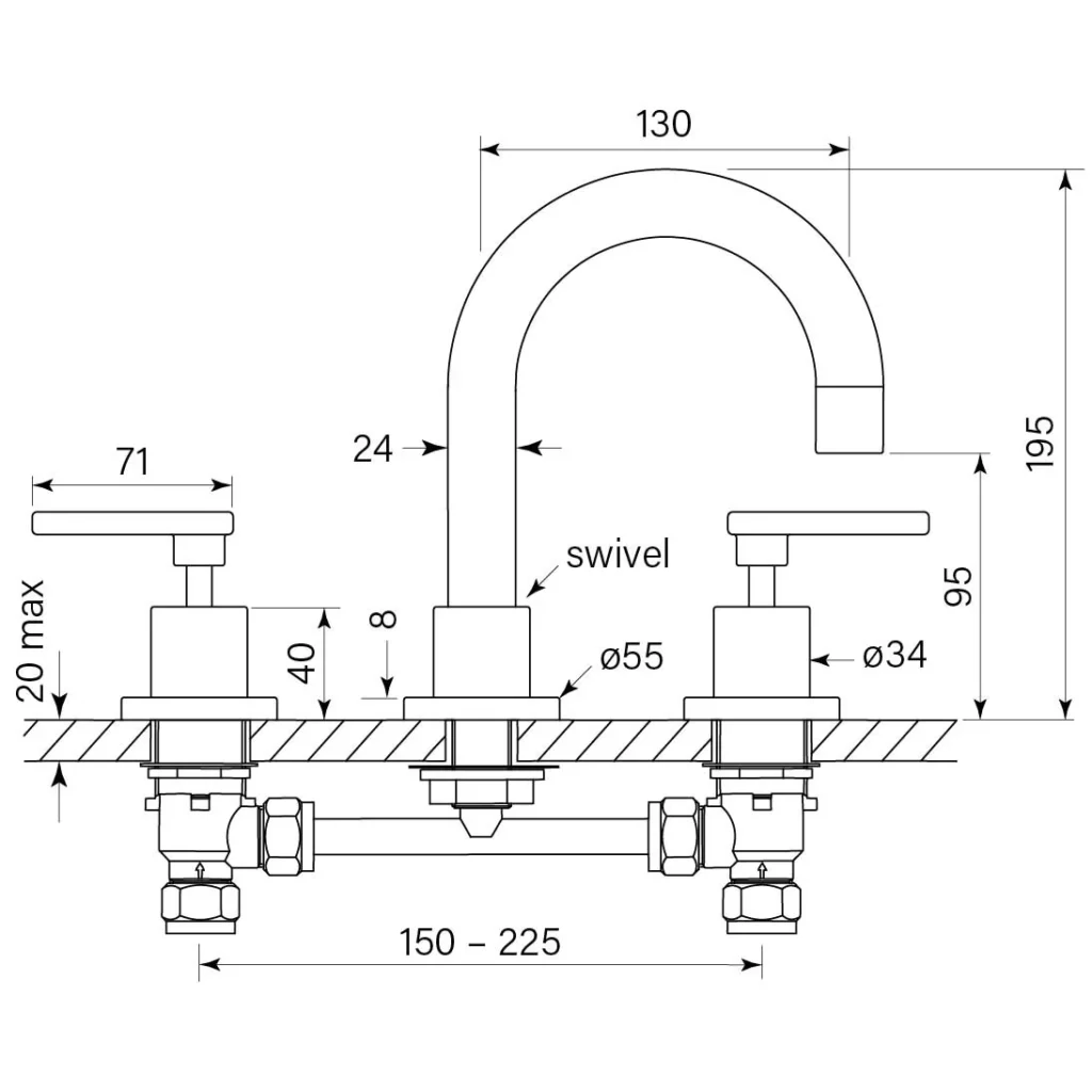 Chisel lever and cross handle taps are fixed to the valve with this clever hidden fixing system.