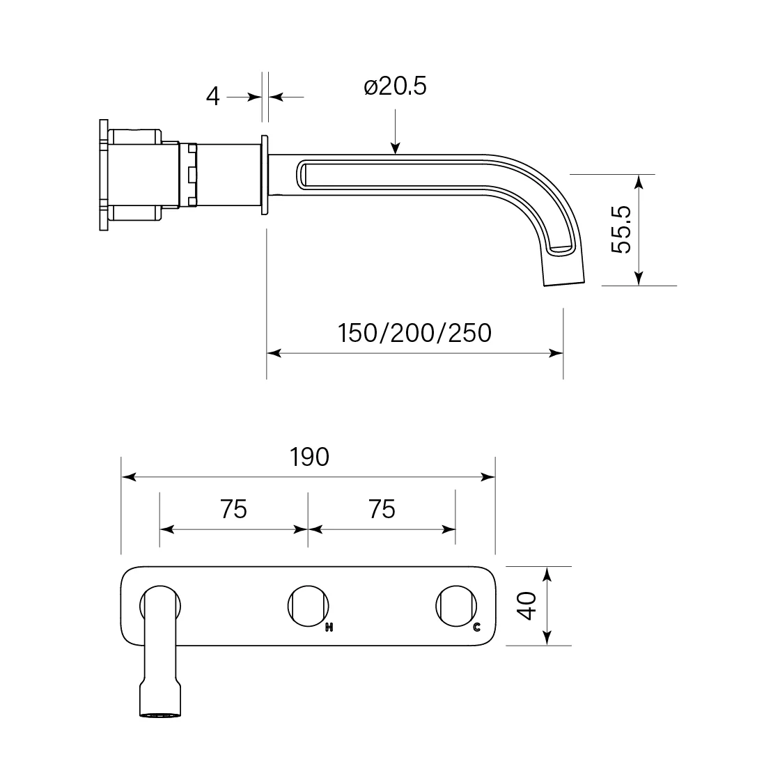 Zero Progresiv Smooth Wall Basin Mixer Set, 150