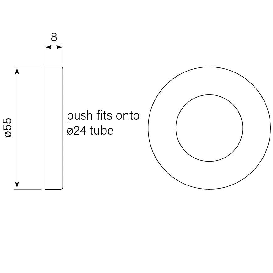 Fits 24 mm shower arms and droppers