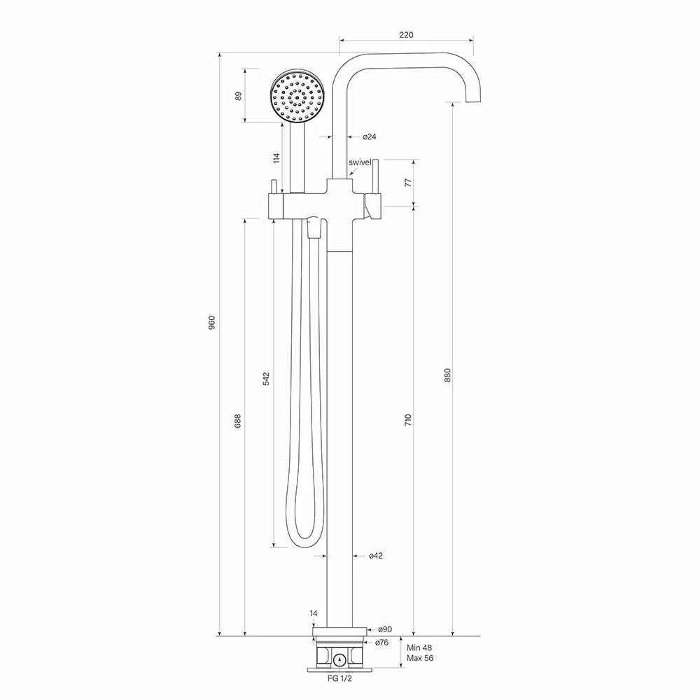 Pegasi Floor Bath Mixer Square w. Handshower quantity