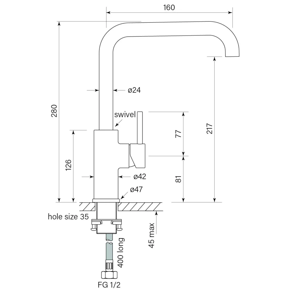 Swivel spout reach 160 mm