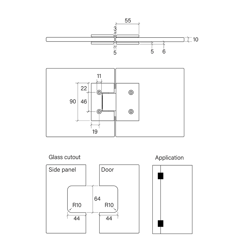 / Shower Hinge, Glass-to-glass 180 degree