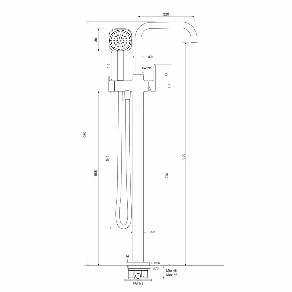 Zeos Floor Bath Mixer w. Handshower quantity