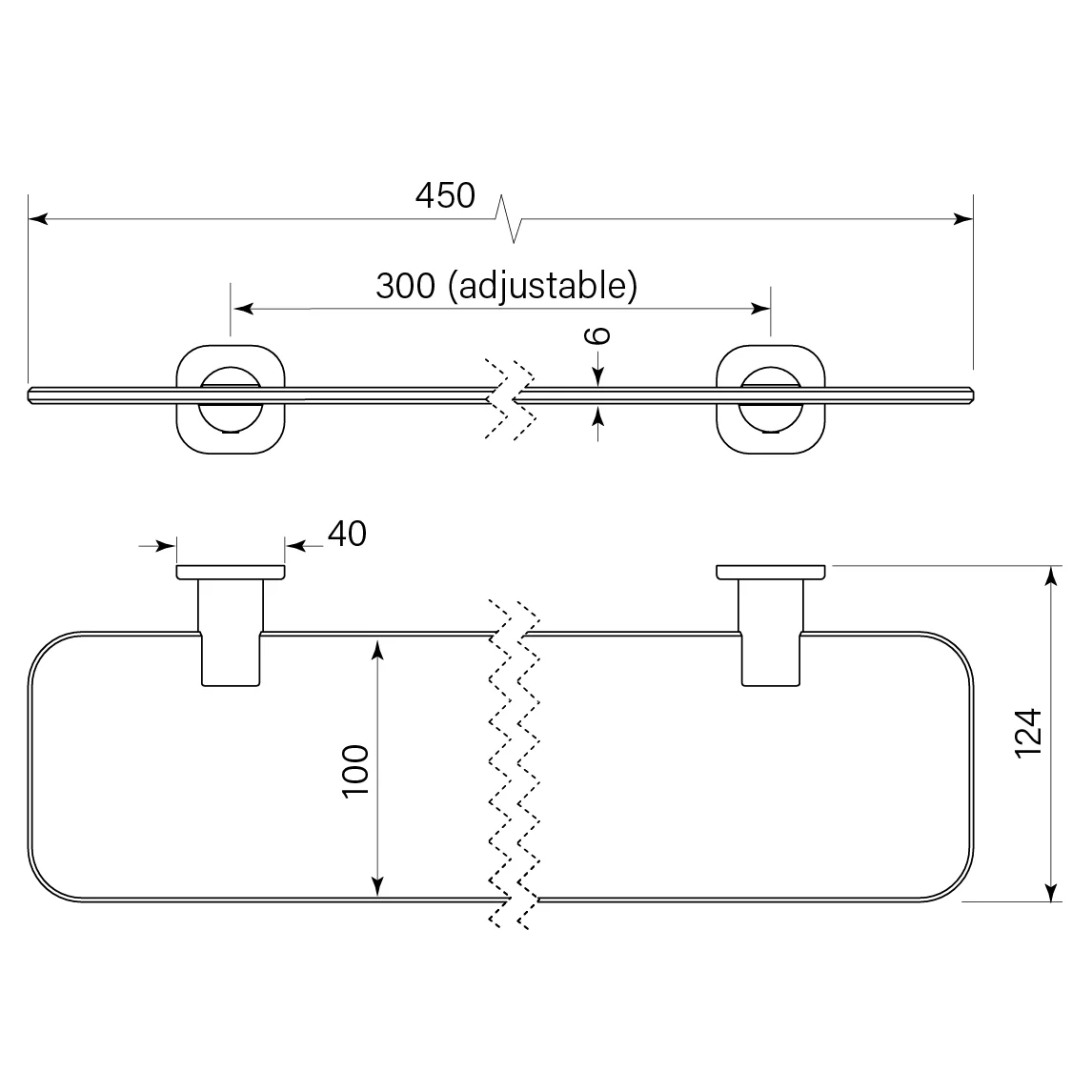 450 x 100 mm shelf size