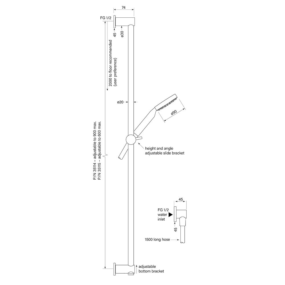 Zeos Slide Shower, Retrof 900, 90sq quantity
