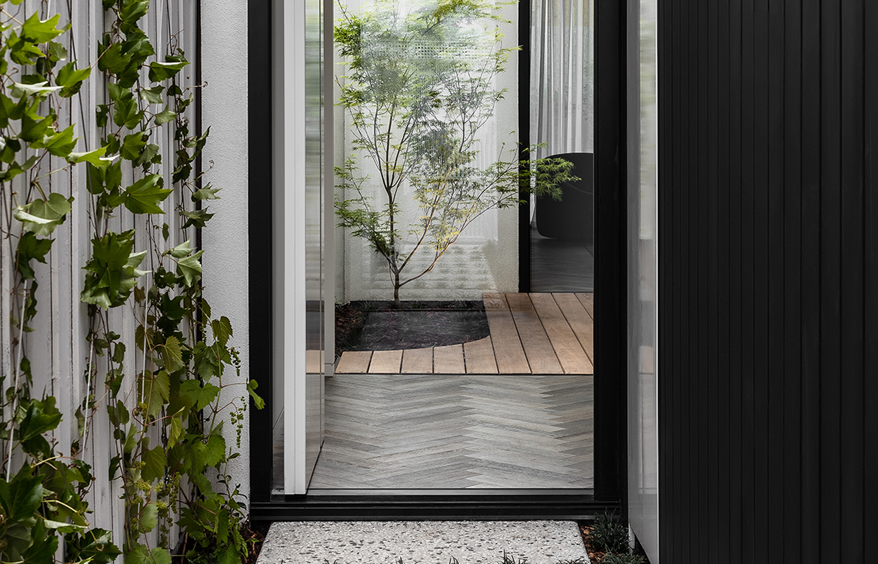 Located in South Yarra on a 214 square metre site, Argo House uses deliberate design to overcome the difficulties of limited space and the south facing back yard. A central courtyard acts as a beautiful entry feature, as well as distributing plenty of natural light throughout the living spaces of this home.