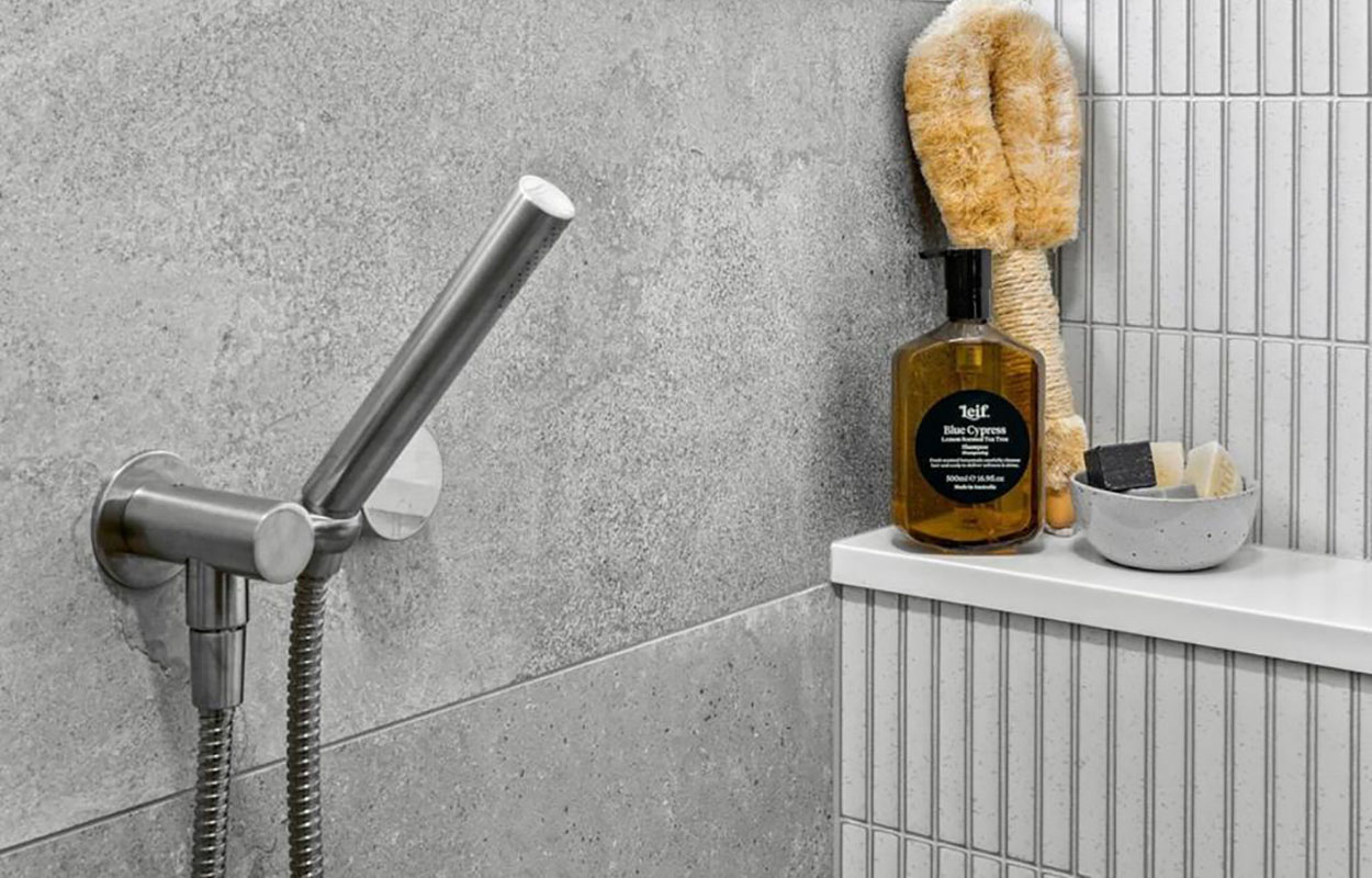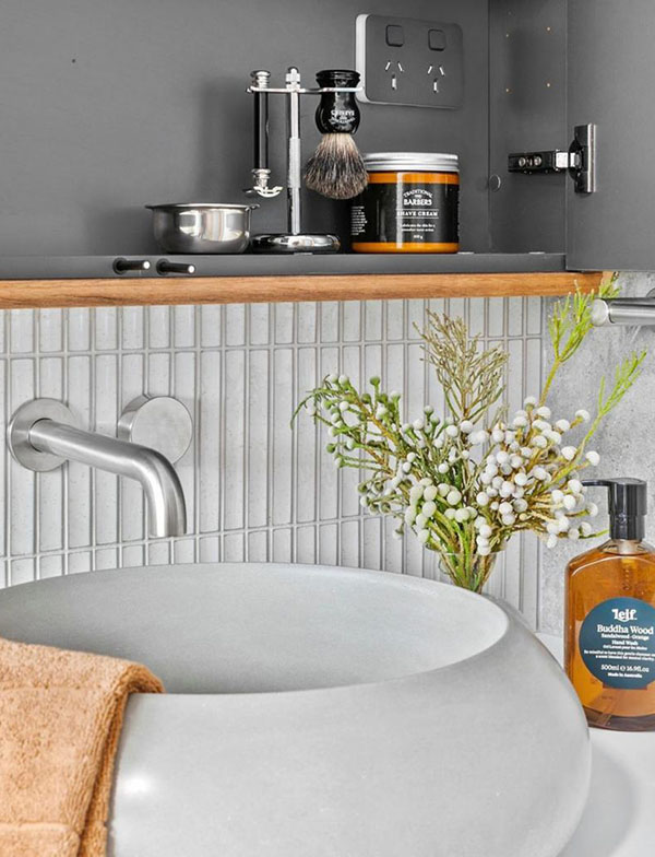 Our Zero Smooth tapware looks amazing in this space. The elegant curve of our Progresiv mixer handle contrasts with the vertical splashback tiles, drawing the eye to both features.