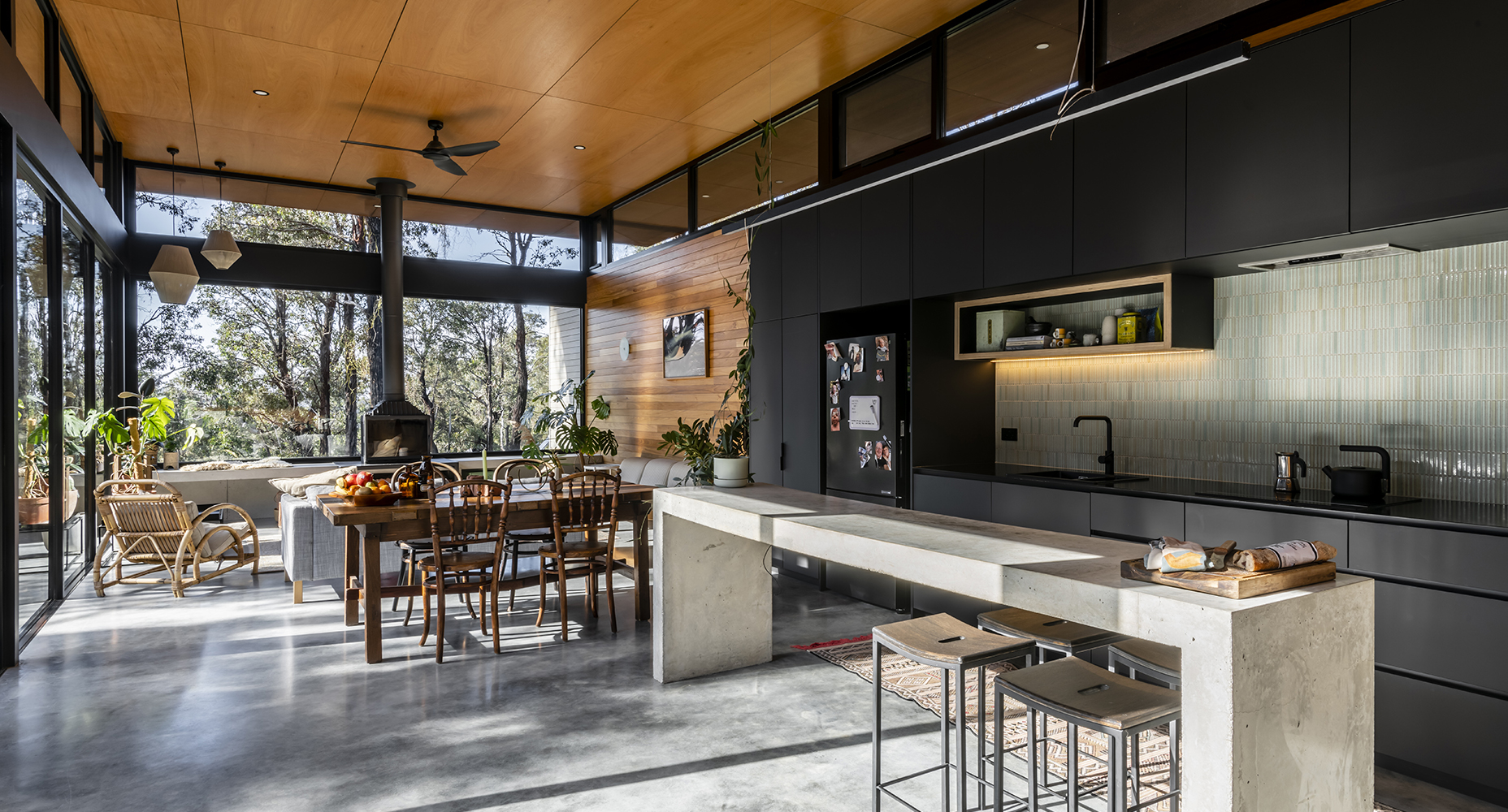 The incredible Bimbadeen house uses smart design and natural materials to encapsulate the stunning native backdrop and make use of the abundant natural light. It merges seamlessly into its natural surroundings while still providing convenience and practicality, bringing organic living and modern functionality to a harmonious blend.
