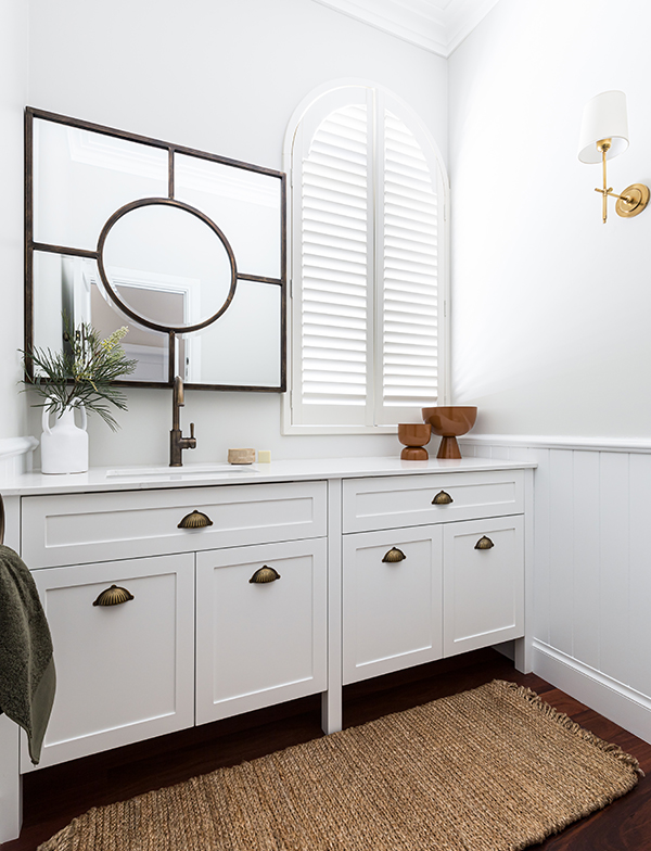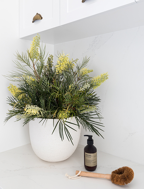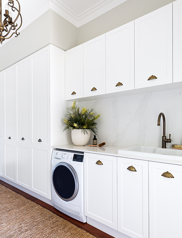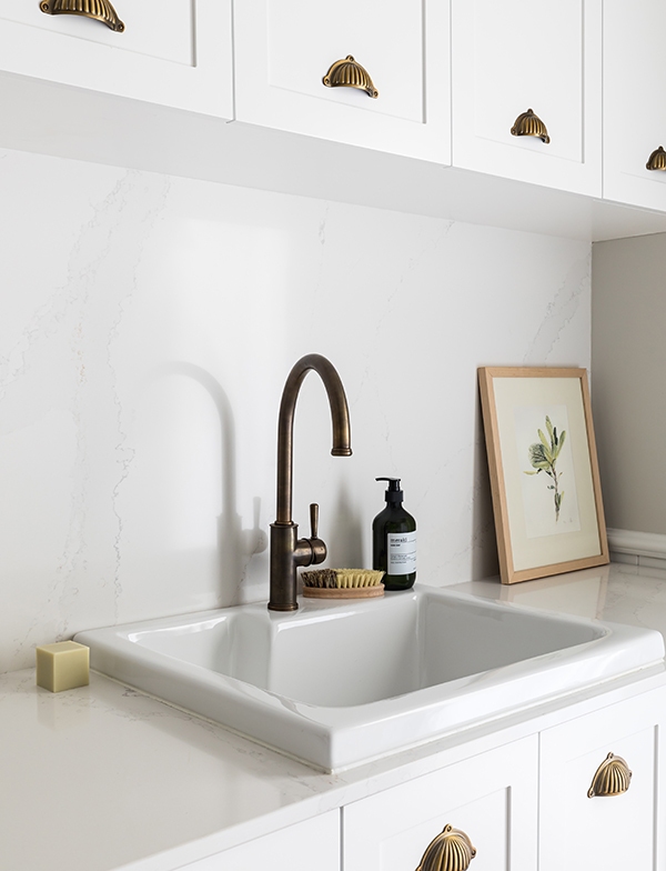 A beautiful focal point is created with our sink mixer in the open laundry, along with half shell cabinet handles and cabinetry detailing, combining refined design and user practicality in this simplistic space.