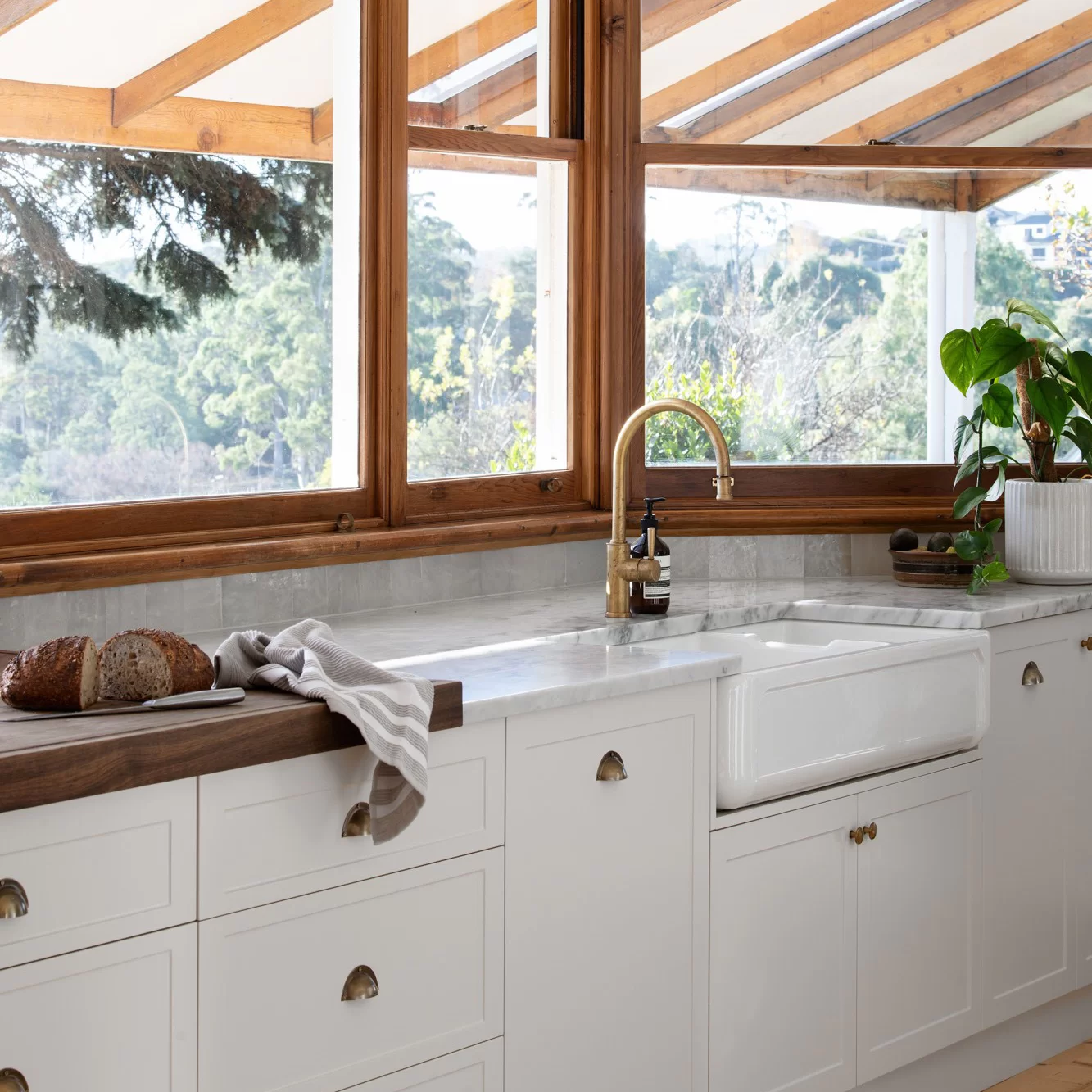 New life has been breathed into this beautiful Georgian family home located in Launceston, Tasmania, by the talented Emma Heidke of Symmetrie Interior Design Studio. Symmetrie is a bespoke Interior Design and Styling Studio focused on creating beautifully balanced spaces with considered design. Founder and creative director Emma Heidke is inspired by modern Australian architecture and refined, aesthetically pleasing designs with natural finishes, earthy textures, and quality homewares that add personality and life to the spaces she designs. In this project the client wanted to pay homage to the style of the architecture, whilst revitalizing and adapting the space to suit a modern family way of life. The Cascade collection of tapware by Faucet Strommen was chosen due to its classic style and Australian Made quality. “We used Faucet Strommen tapware as it was the perfect style fit with our heritage renovation project. The raw brushed brass complimented the rest of the finishes beautifully.” Emma Heidke, Symmetrie Founder.