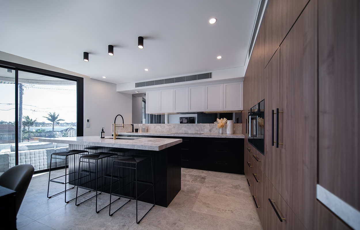 The new Taren Point Project on Holt Road is nothing short of pure luxury. The double residence, which overlooks a beautiful coastal landscape, features natural stone and wood throughout for a mixed modern look.