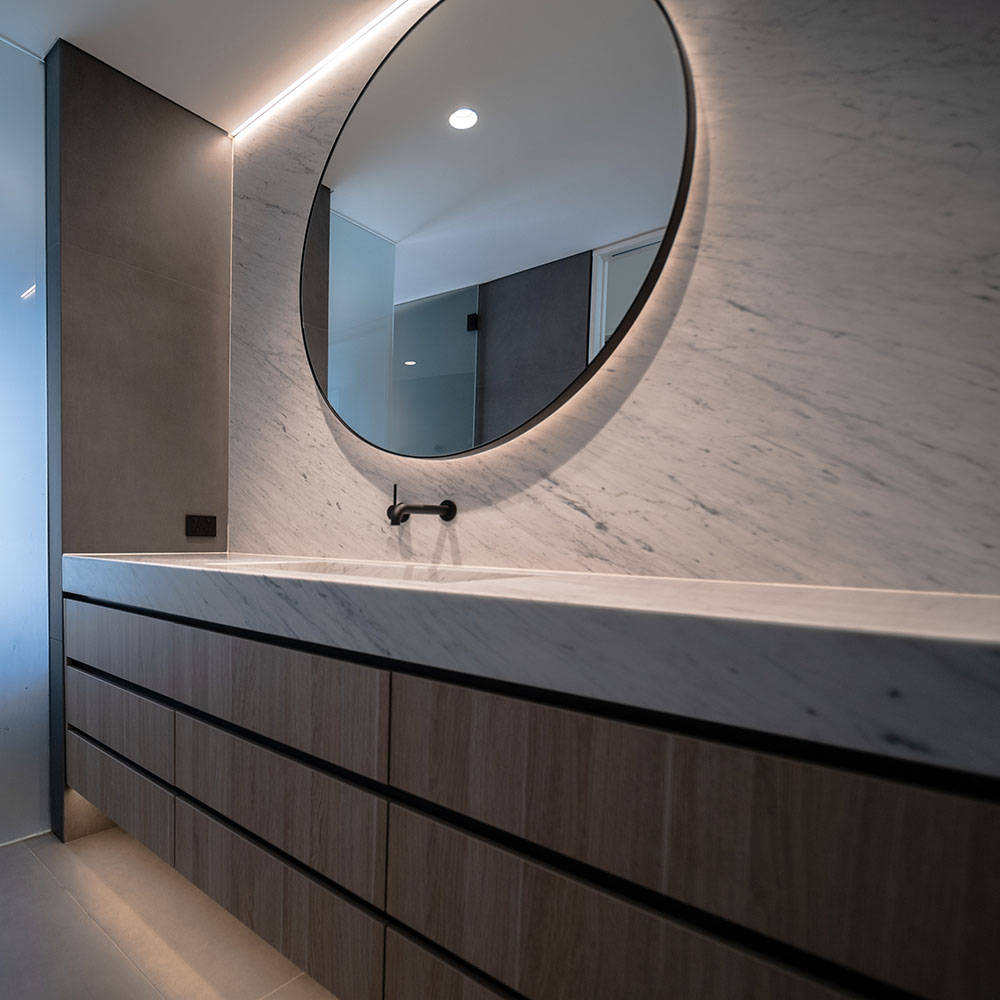 Modern bathroom renovation by the team at Bathrooms By Oldham,