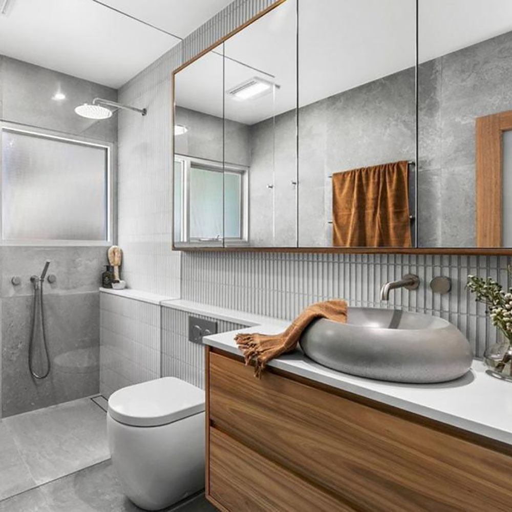 Modern bathroom renovation by the team at Bathrooms By Oldham,