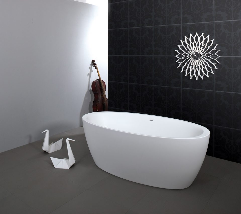 Products featured: 30953-97 Zero Progresiv Knurl Wall Basin Mixer Sets, Brushed Liberty Gold and 30824-33 Silkstone Henge Basins